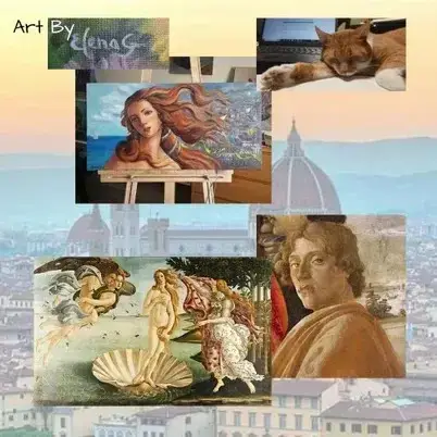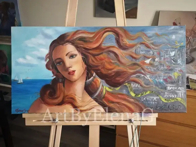 Earlier that day, Elena and Nik discussed which oil paintings to present at an upcoming art show. Elena suggested her version of Botticelli’s Birth of Venus.