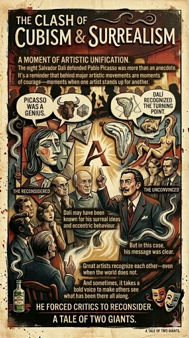 What they didn’t expect was that Dalí—young, unpredictable, and unapologetically strange—would become one of Picasso’s most dramatic defenders.